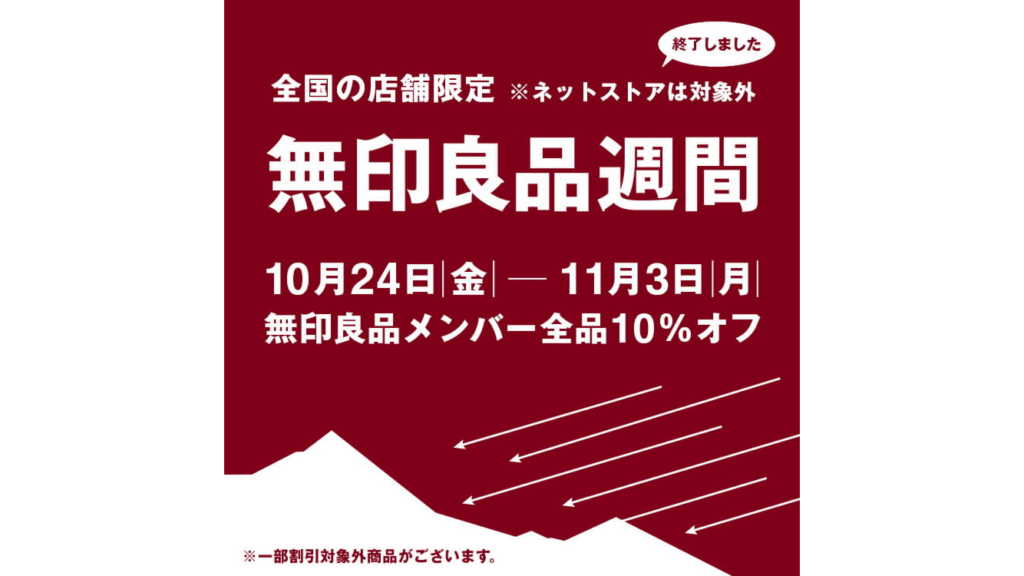 キャンペーンや割引情報は、あくまで過去の傾向をもとにした一般的な目安です。最新の実施状況や条件は、必ず無印良品公式サイト・公式アプリで確認してください。